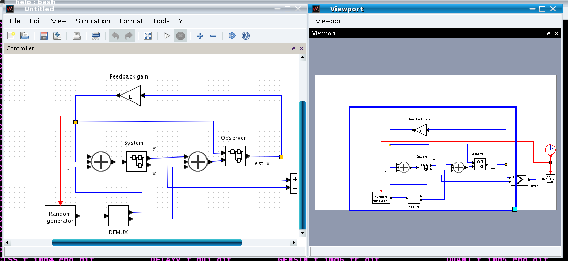 Above, you have an example of the viewport which is used to zoom on a part of a diagram, and on the right, the xcos window displays the zoomed part of the diagram.